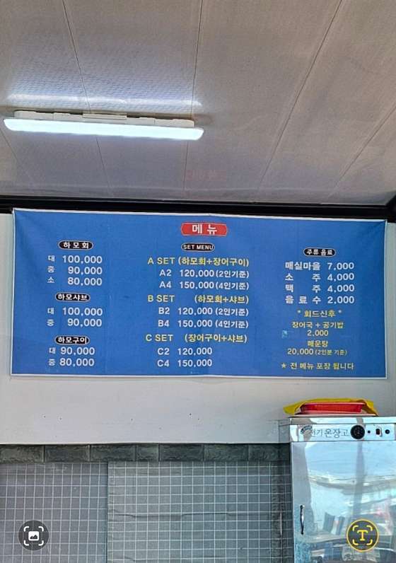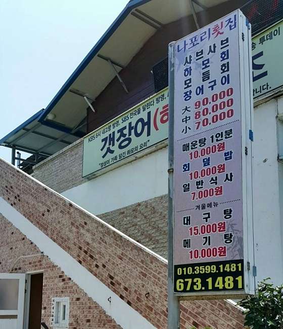 연락처: 055-673-1481 원조 국내산 갯장어, 아침, 점심, 저녁, 주차