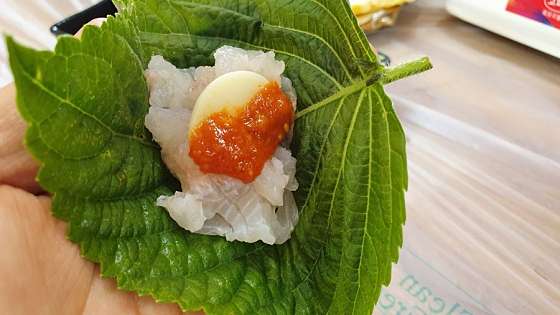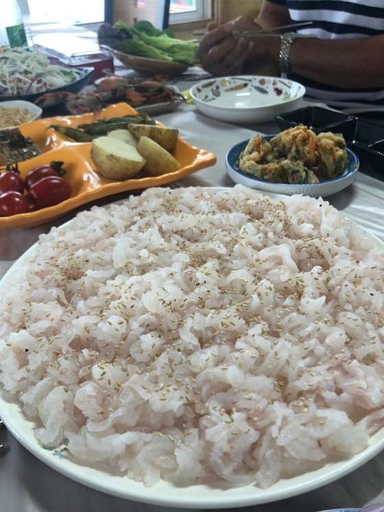 하모는 다른 장어와는 달리 이빨이 굉장히 날카로운데요. 갯장어를 야채와 콩가루를 곁들여서 초장으로 비벼먹고 푹 고아서 진한 국물 맛이 일품인 별미입니다.