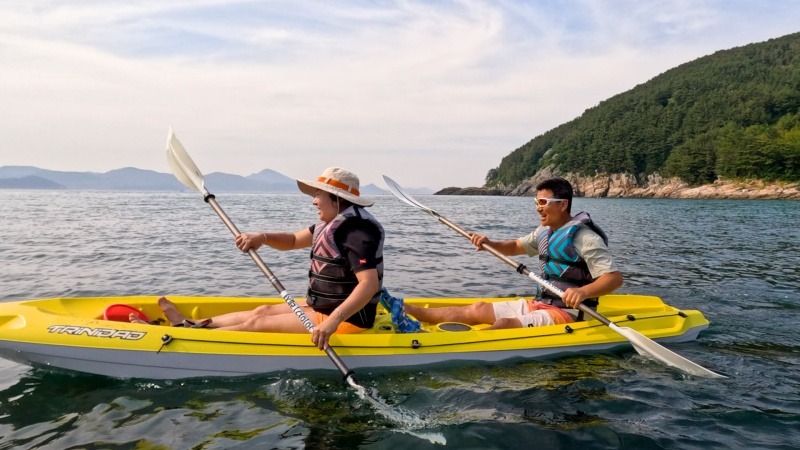부부가 운영하는 비진도바다이야기펜션은 북극해 연안의 그린랜드와 알래스카, 알루샨열도지역에 거주하던 에스키모들이 사용하던 보트를 개량한 카약을 즐길 수 있는데요. 간단한 패들링 기술만 습득하면 초보자도 쉽게 즐길수 있습니다. 기다란 보드 위에 손이나 패들로 젖는 기술로 타는 보드라 배우기 쉽고 다양한 활용성 때문에 인기 또한 급상승 중입니다. 바다이야기펜션 고객님들이 비진도를 색다르게 즐길수 있는 경험이 될 것 입니다.