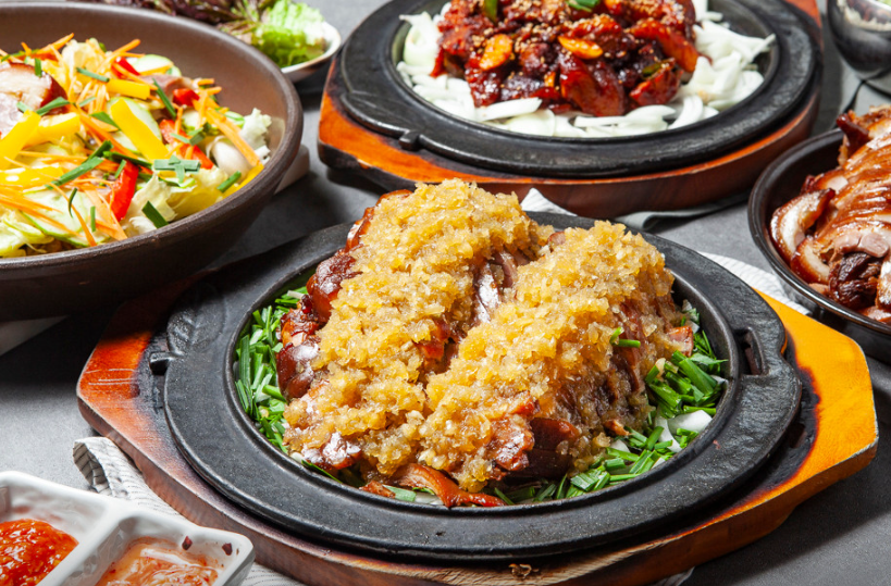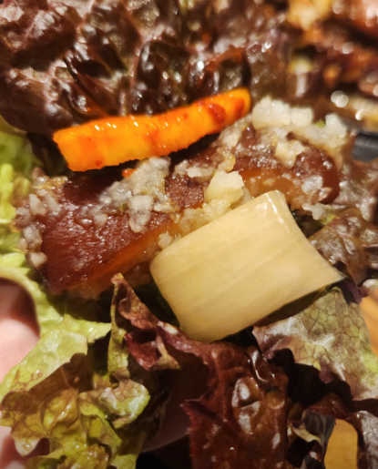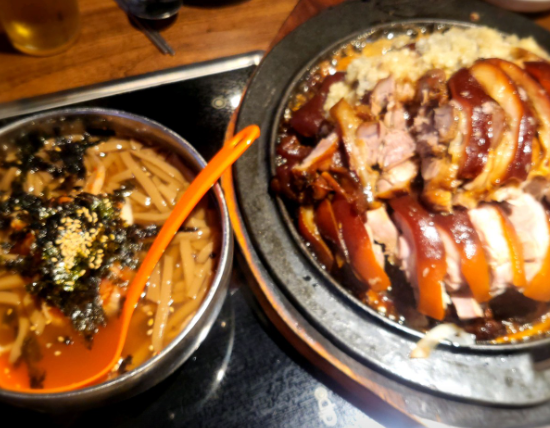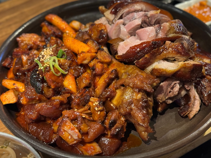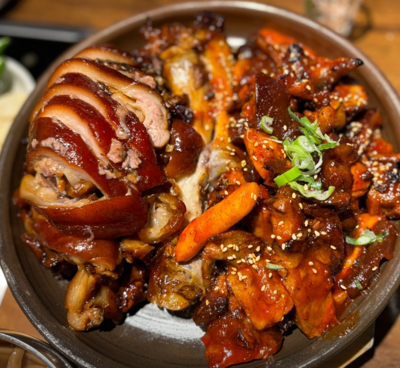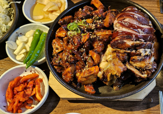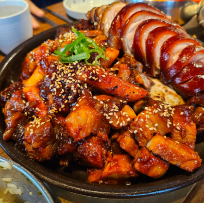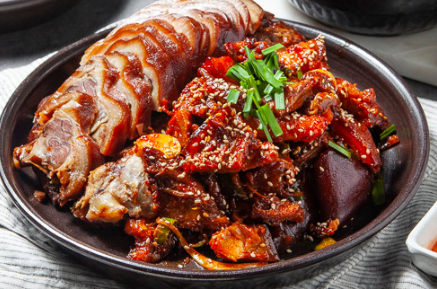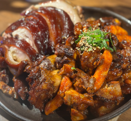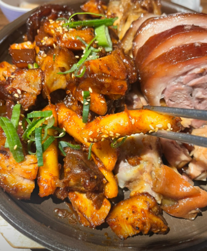 기본 족발과 매콤한 양념족발을 같이 드셔도 좋고요, 같이 제공되는 시원한 묵사발도 만족스럽습니다.