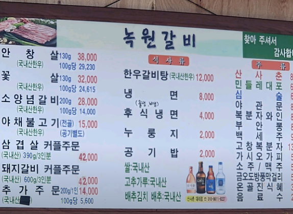 방송에서는 한우 양념소갈비가 소개되었지만 녹원갈비는 토하젓과 갖은 나물 반찬을 섞어 비벼 먹는 비빔밥도 인기 메뉴입니다. 그리고 푸짐한 갈비탕도 같이 드시면 더욱 좋습니다.